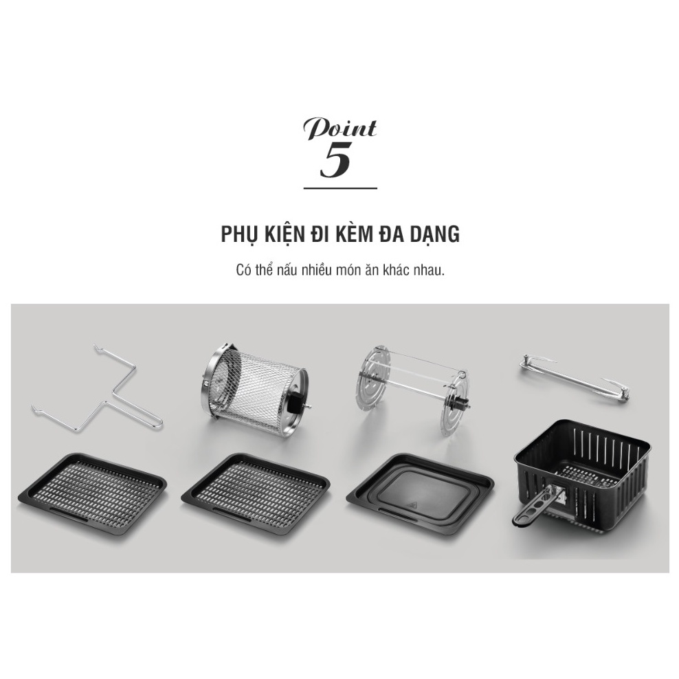 - Phụ kiện đi kèm đa dạng dùng để nấu nhiều món ăn khác nhau.