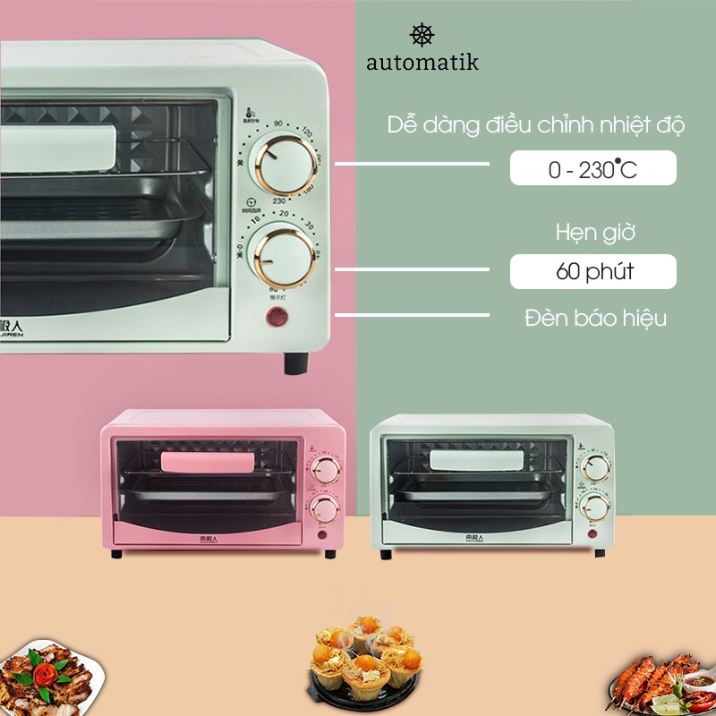 Giới thiệu [BH 12 Tháng] Lò Nướng Điện Mini Đa Năng Nướng Bánh, Thịt, Pizza Chín Đều 12L + Tặng Găng Tay Cách Nhiệt - Automatik