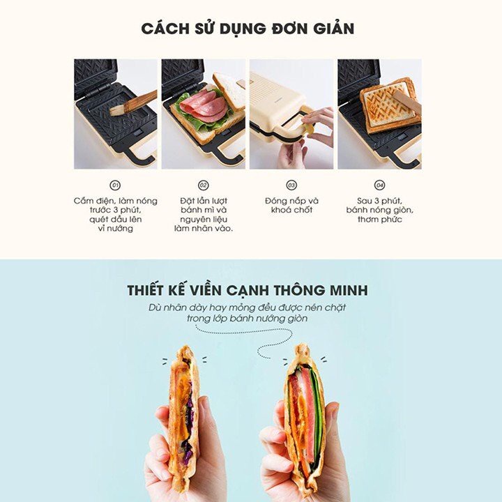 ✔ Chức năng: máy nướng bánh mì Sandwich, làm bánh Waffle, rán trứng,..