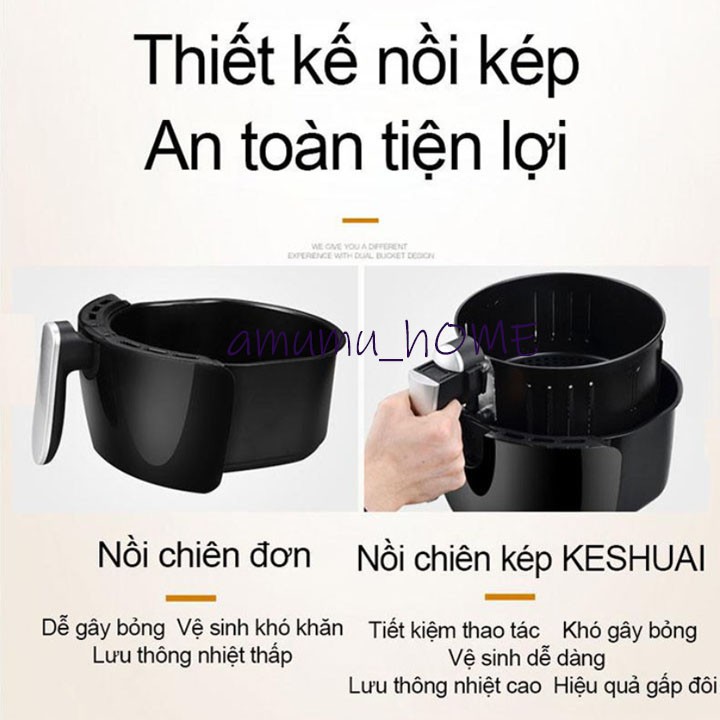 - Nồi chiên không dầu 1500W dung tích lớn giúp chiên rán đồ ăn một cách nhanh chóng, hiệu quả, lành mạnh. Nồi chiên với thiết kể mang kiểu dáng hiện đại, sang trọng, sử dụng chất liệu nhựa ABS an toàn và bền bỉ,