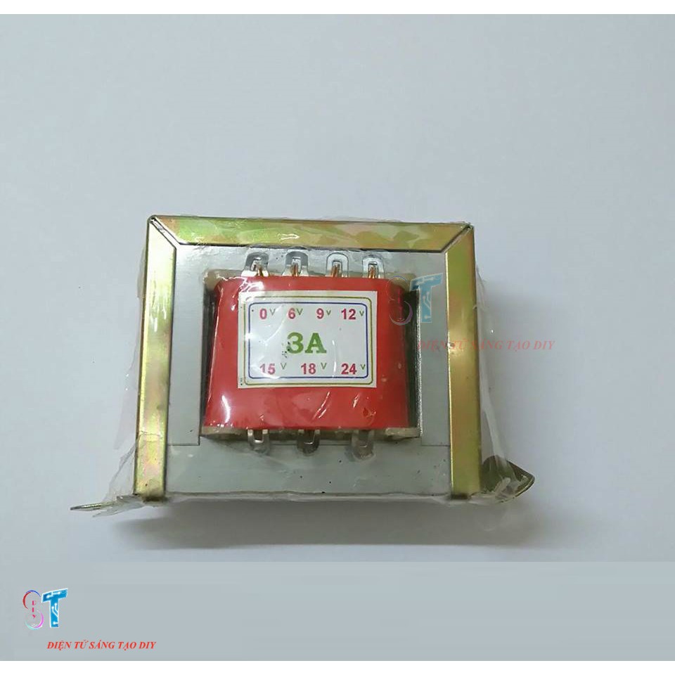 Biến áp 3A là thiết bị để biến đổi điện áp xoay chiều, cấu tạo bao gồm một cuộn sơ cấp (đưa điện áp vào) và một hay nhiều cuộn thứ cấp (lấy điện áp ra sử dụng) cùng quấn trên một lõi từ có thể là lá thép hoặc lõi feri. Cung cấp nhiều mức điện áp ra: 6V 9V 12V 15V 18V 24V