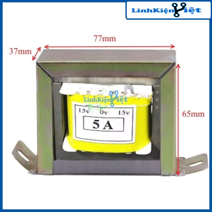 Thông số kỹ thuật của biến áp đối xứng 15V 5A: