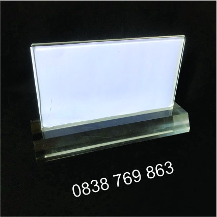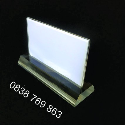 Độ dày: Phần thân: Mica trong 2mm uốn gập đôi cắm vào đế. Phần đế: Mica trong 20mm
