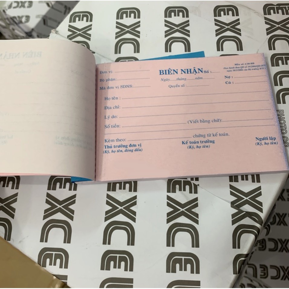 Biên nhận 2 Liên 9x13cm 30 bộ = 60 tờ