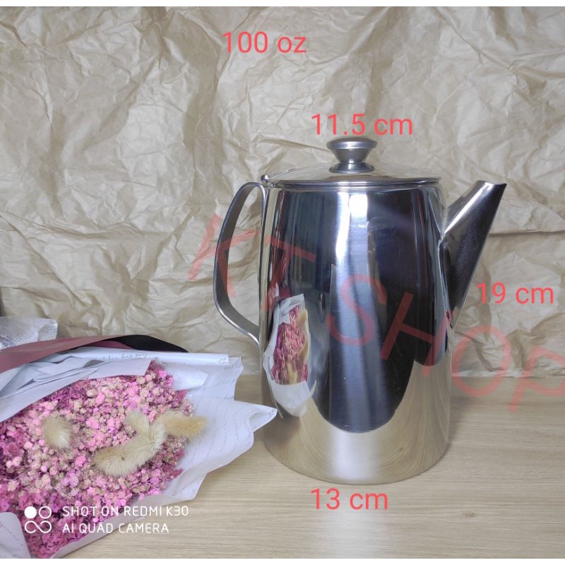 Chất liệu thép không gỉThiết kế vòi dài giúp tiện lợi cho việc rót. Trong bình có 1 tấm lược dùng để cản đá , bã trà.