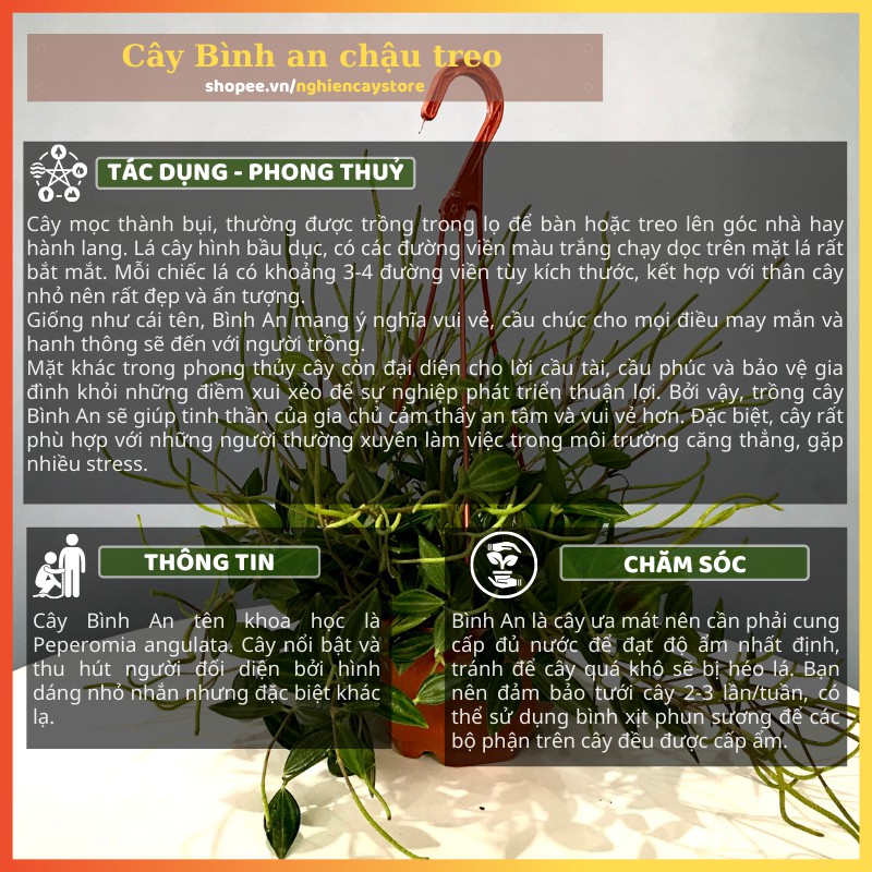 Nhà cửa & Đời sống > Làm vườn > Cây cảnh || Cây Bình An chậu treo ban công, cửa sổ mang may mắn, bình anCòn hàng