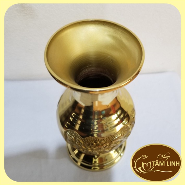 Bình bông bằng đồng dùng chưng hoa bàn thờ,nhìn rất sang trọng và đẳng cấp.Bình bông bằng đồng,do CTy đồng Lộc Thành sản xuất.Đồng đã qua xử lý chống oxi hoá không đen,không cần phải đánh bóng hàng năm.Vì vậy,quý khách hàng mua Sp về chỉ việc sdụng,không cần phải đánh bóng sp mỗi năm và chỉ cần vệ sinh sản phẩm bằng khăn mềm,sạch.