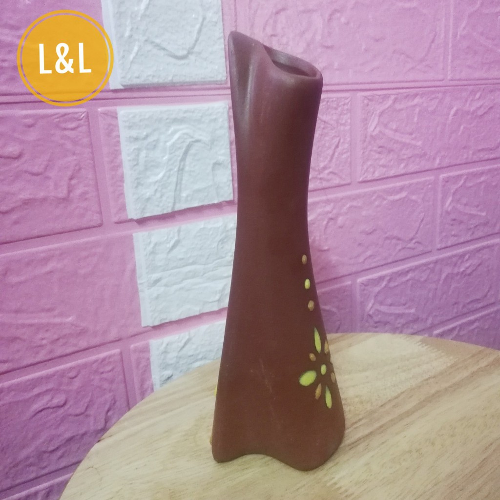 + Lọ hoa được hình thành từ đất sét hoặc đất cao lanh nung ở nhiệt độ khoảng 800 độ C tạo nên sản phẩm gốm Bát Tràng có lớp da gốm mộc màu nâu đỏ rất đặc trưng với bề mặt lì và nhẵn. Nổi bật trên thân lọ là họa tiết thổ cẩm được người nghệ nhân tô vẽ bằng nhiều màu sắc rất sinh động, mang lại sự độc đáo với ý nghĩa về vẻ đẹp dân tộc, về nét đẹp truyền thống.