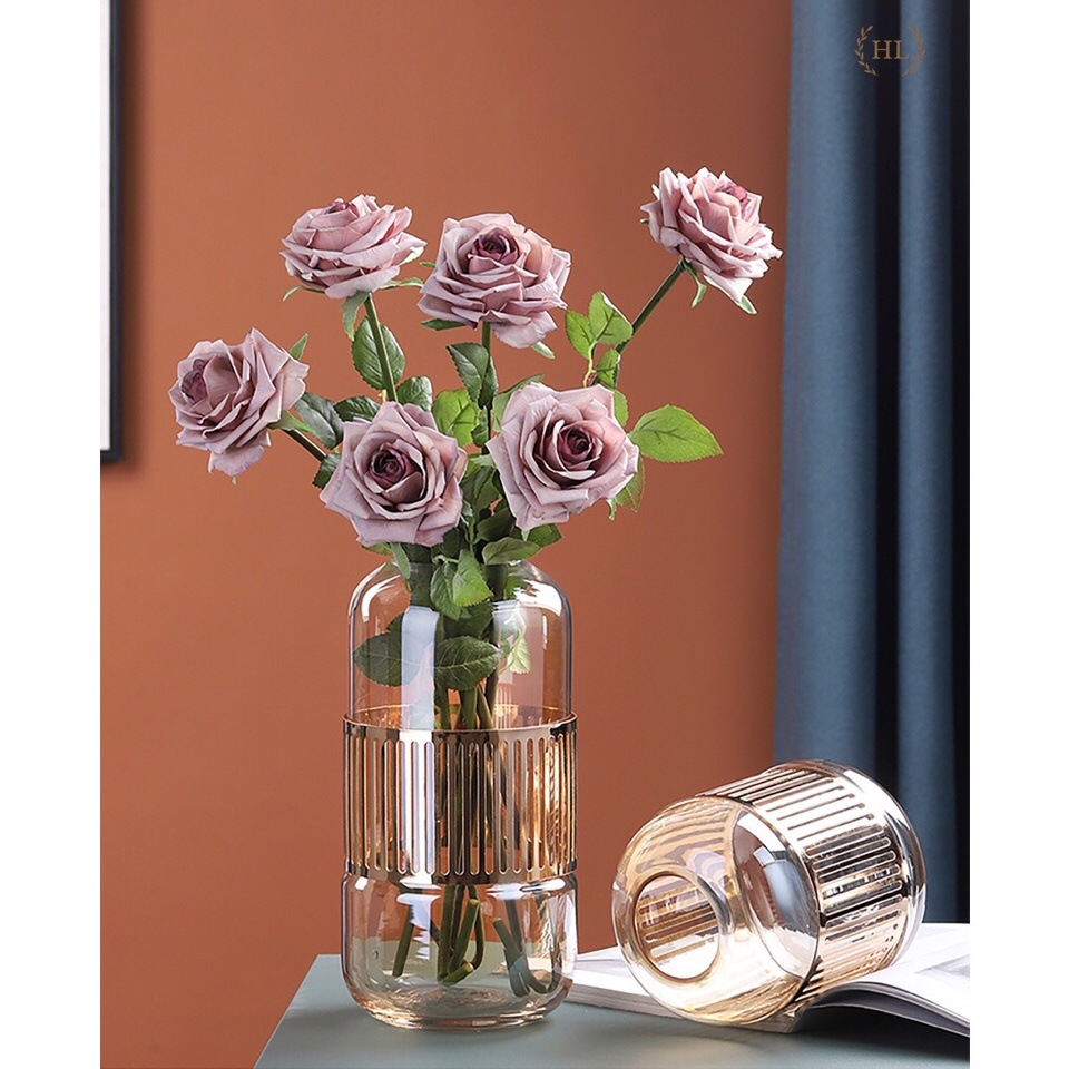 Bình bông lọ hoa thủy tinh đen Decor 2022, lọ cắm hoa thủy tinh bọc hợp kim vàng