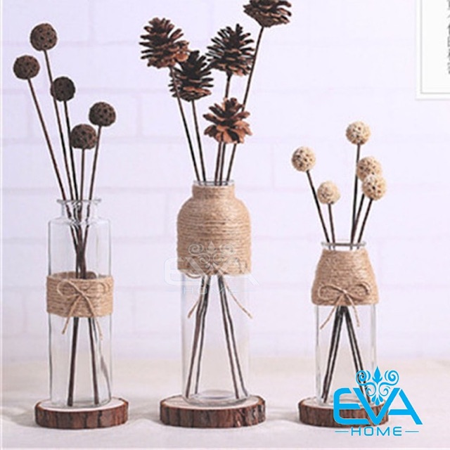 Bình Bông Lọ Hoa Thủy Tinh Vuông Tặng Kèm Dây Bố Trang Trí