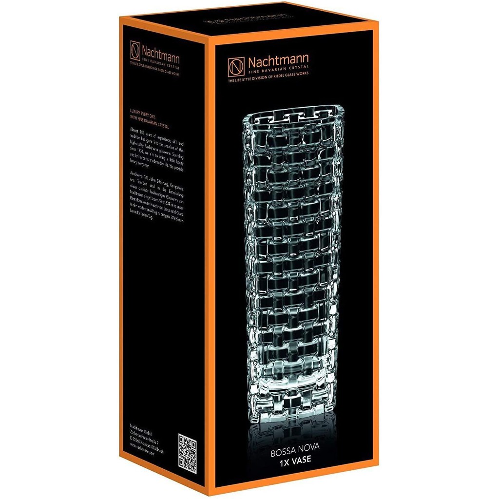 - Với thiết kế sang trọng Cùng với chất liệu pha lê trong suốt và bền màu, bình cắm hoa Nachtmann Bossa Nova còn là quà tặng rất sang trọng và ý nghĩa cho gia đình, bạn bè hay nhân dịp các ngày đặc biệt trong năm: ngày cưới, tân gia, ngày của mẹ, ngày gia đình, giáng sinh,....