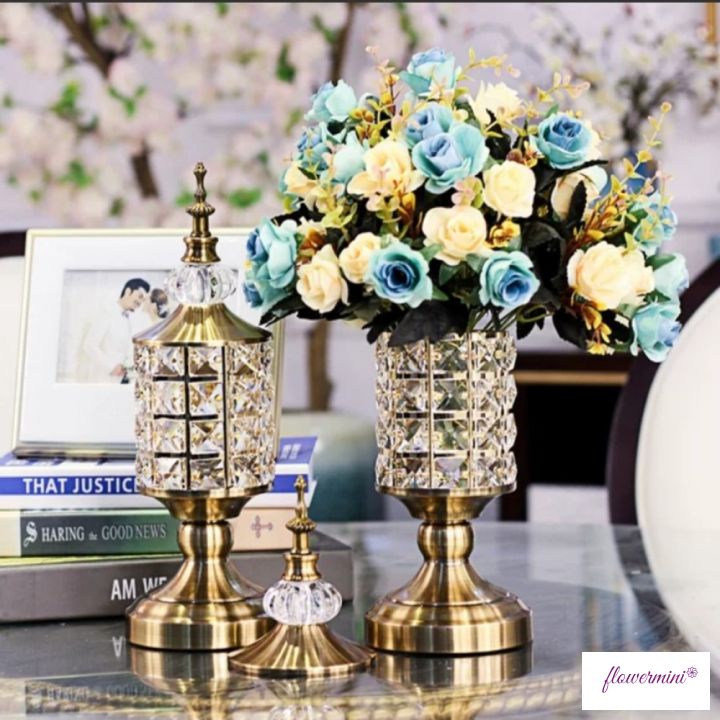 Giới thiệu Bình cắm hoa pha lê thiết kế mạ vàng sang trọng dùng cắm hoa lụa cao cấp trang trí phòng khách, tiệc cưới đẹp