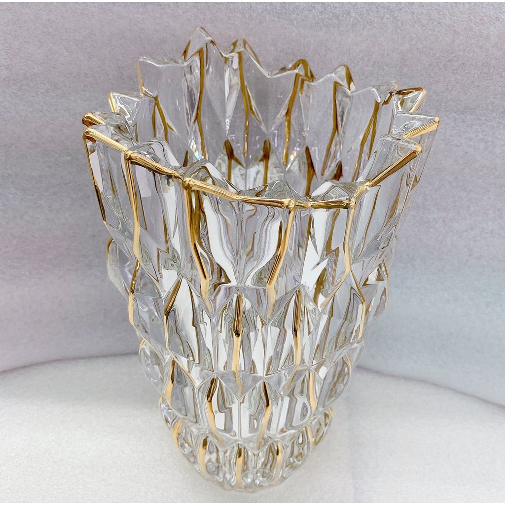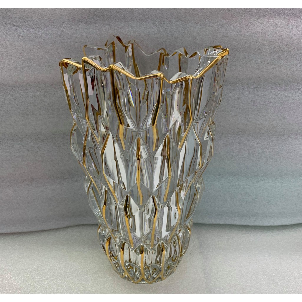 BÌNH CẮM HOA THỦY TINH VIỀN VÀNG CAO CẤP VÂN KIM CƯƠNG 30CM