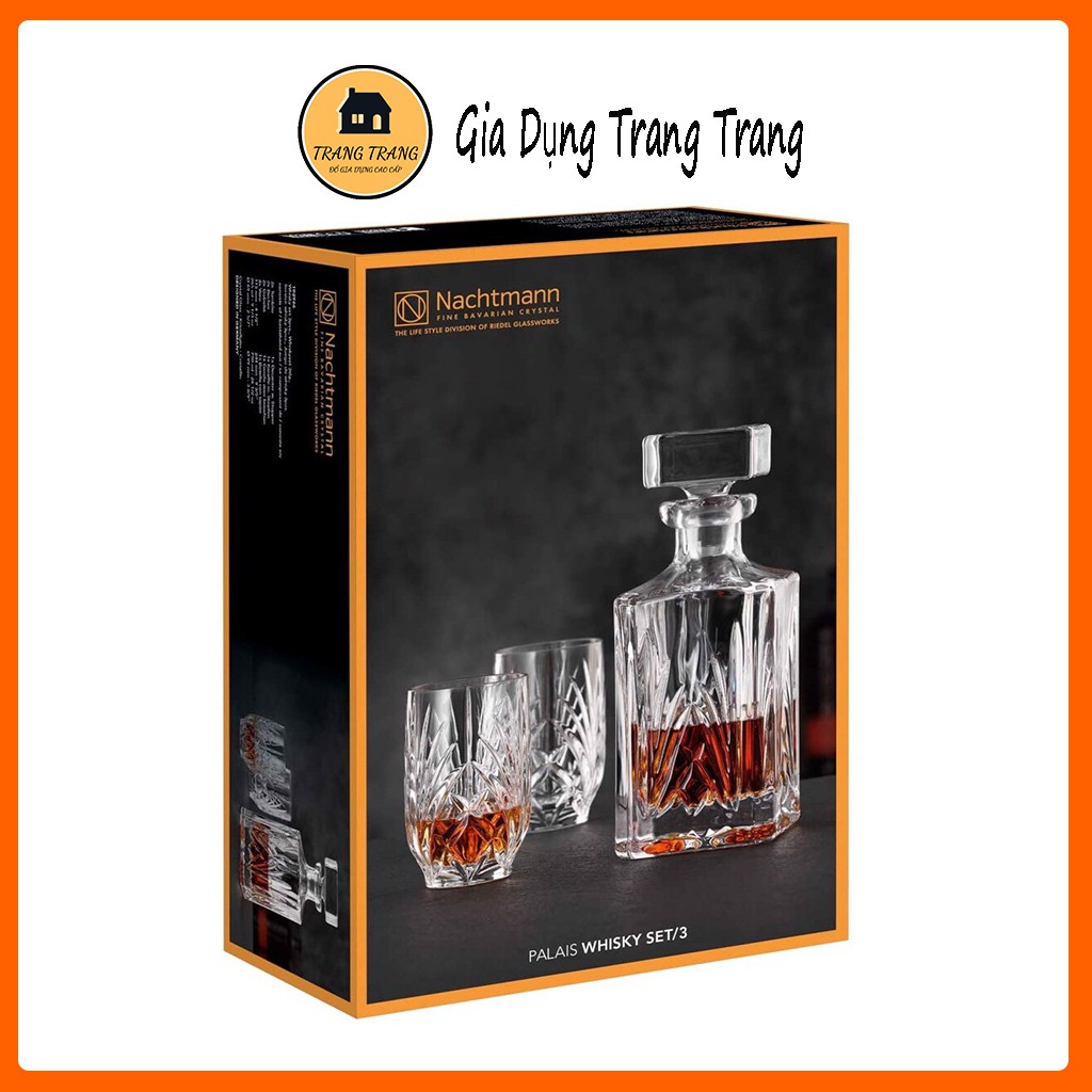 - Palis Whisky Set của Nachtmann gây ấn tượng với thiết kế sang trọng. Phục vụ thức uống whisky hảo hạng trong bình gạn và hai ly whisky thủy tinh.