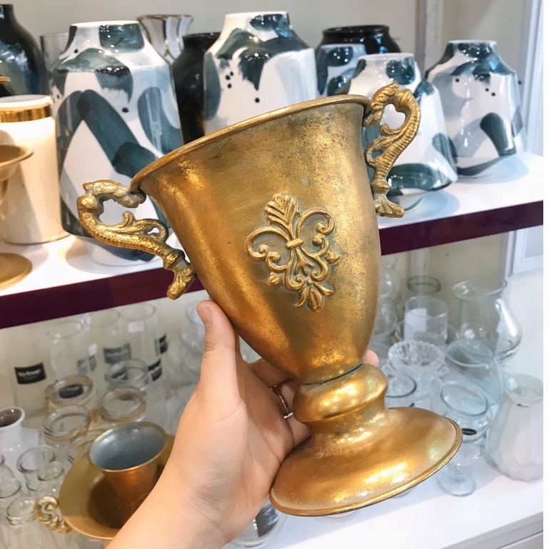 Nhà cửa & Đời sống > Trang trí nhà cửa > Bình trang trí || Bình cúp đồng chạm nổi cắm hoa - LOH0418Còn hàng