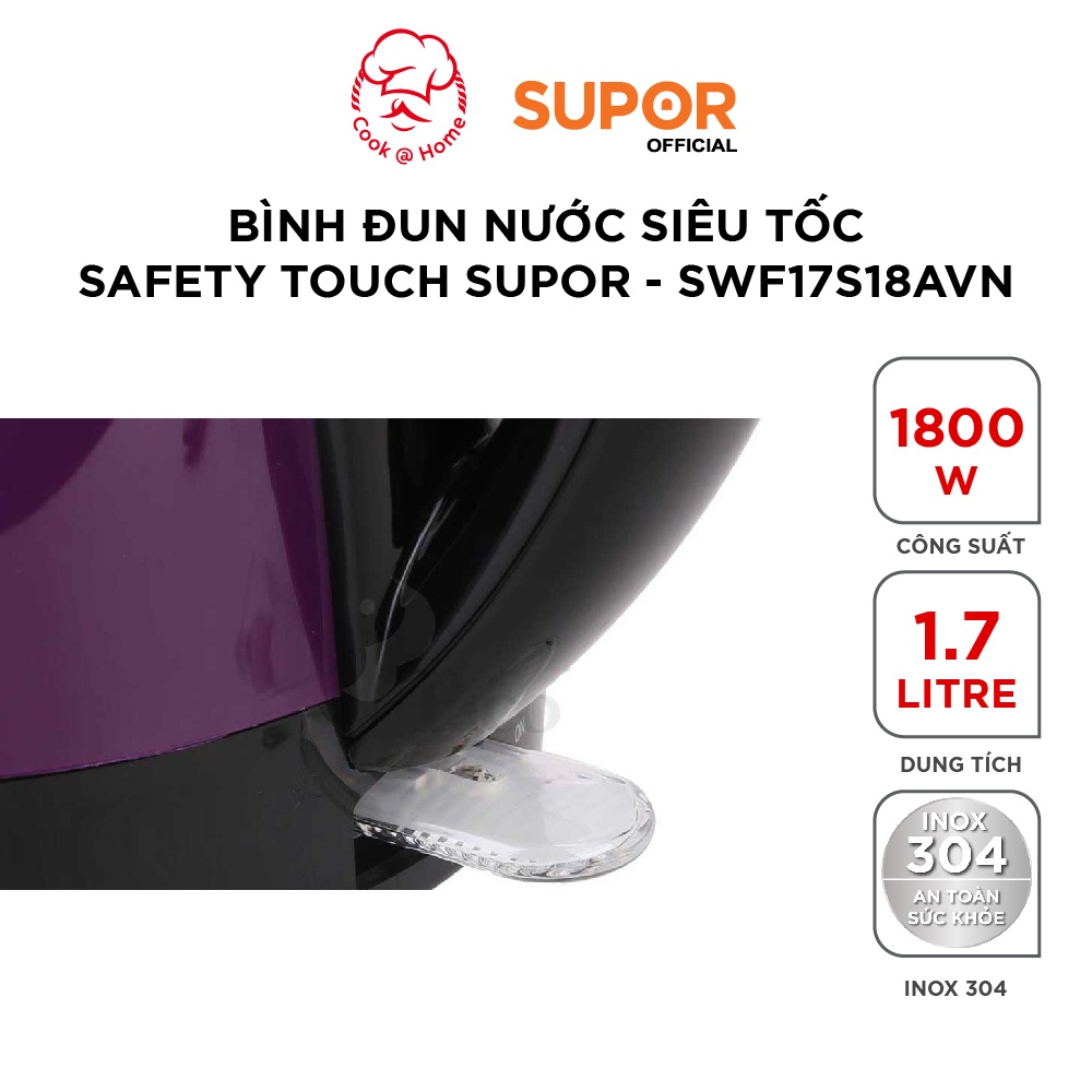 Giới thiệu Bình đun nước siêu tốc Safety Touch Supor SWF17S18AVN - 1.7L, 1800W