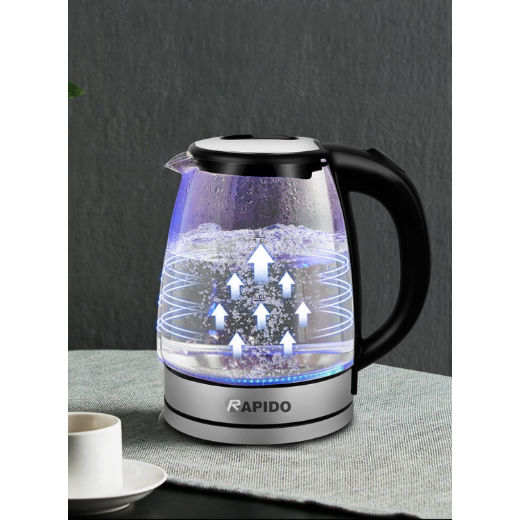 Bình Đun Nước, Bình siêu tốc thuỷ tinh, Ấm siêu tốc thủy tinh Rapido An toàn, Tiết kiệm điện. BẢO HÀNH CHÍNH HÃNG UY TÍN