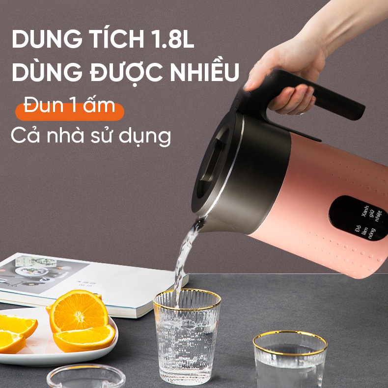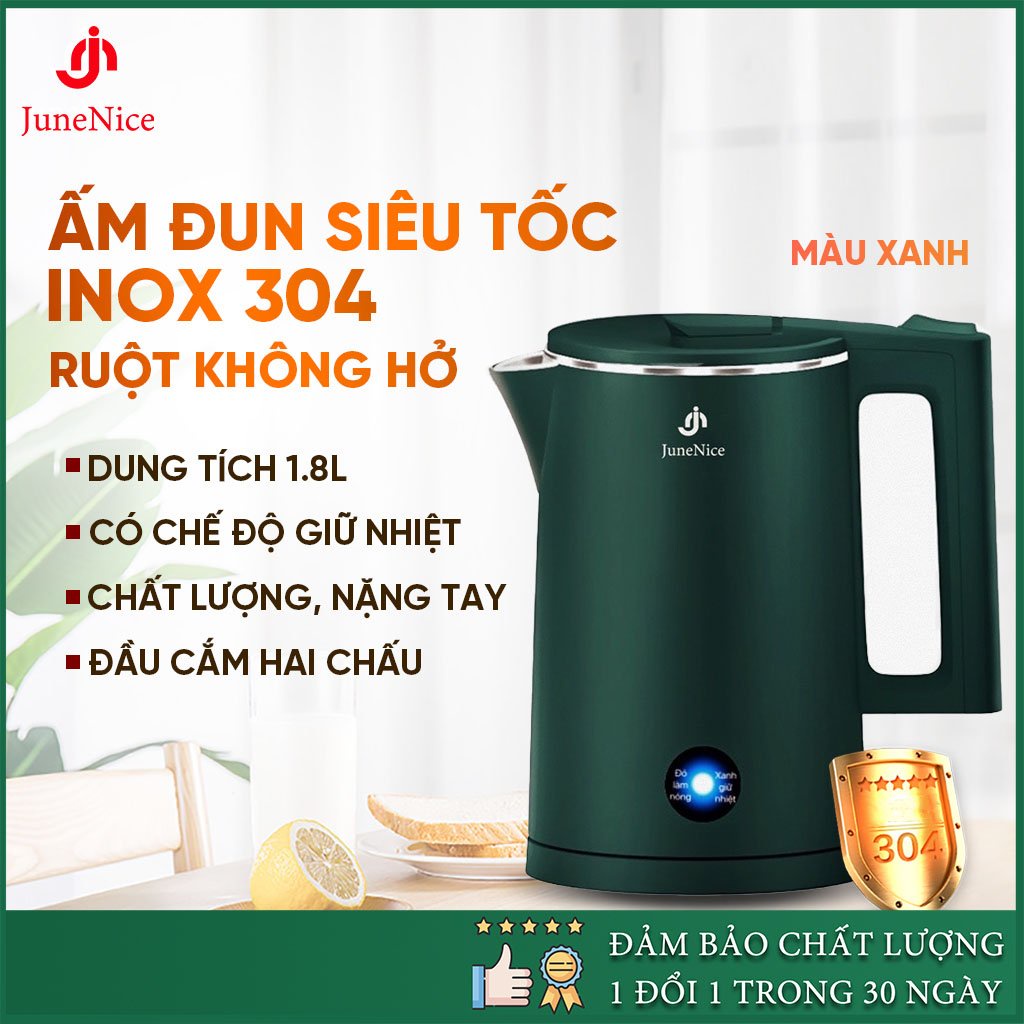 Bình đun nước siêu tốc, ấm siêu tốc 1.8 lít giữ nhiệt và đun, ruột bằng thép không gỉ Inox304 của JN June Nice