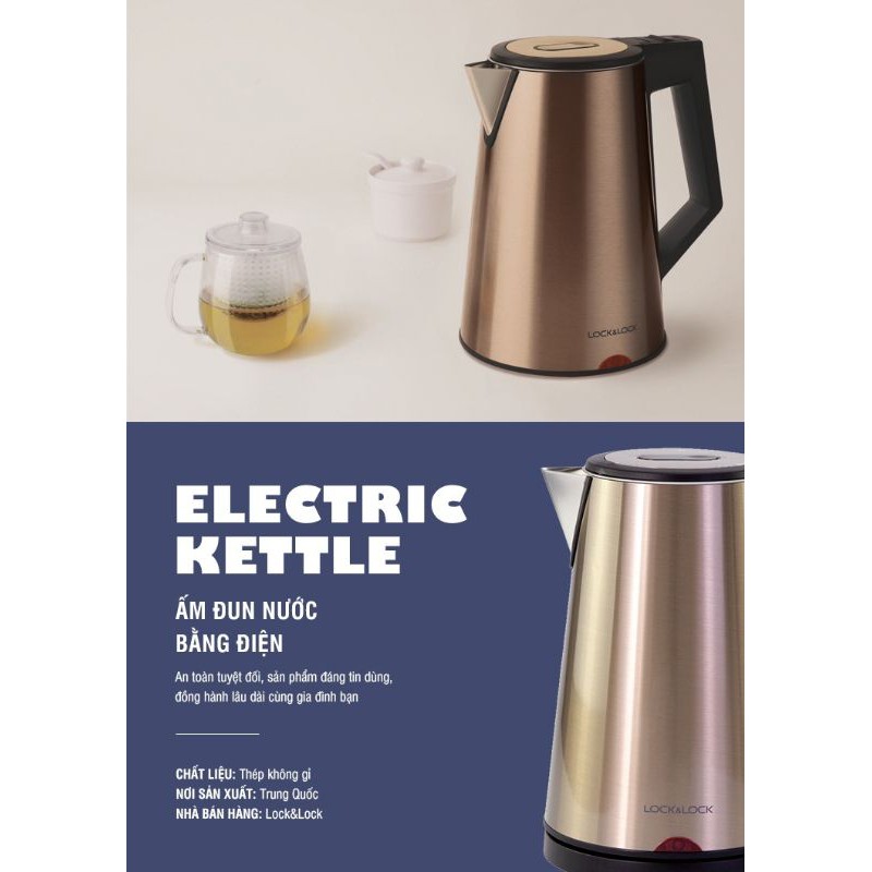 Giới thiệu Bình đun nước siêu tốc Lock&Lock Electric Kettle 1.7 Lít EJK631 bảo hành 12 tháng chính hãng