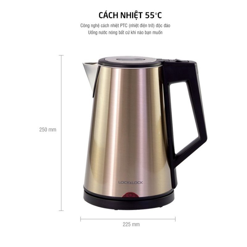 Bình đun nước siêu tốc Lock&Lock Electric Kettle 1.7 Lít EJK631 bảo hành 12 tháng chính hãng