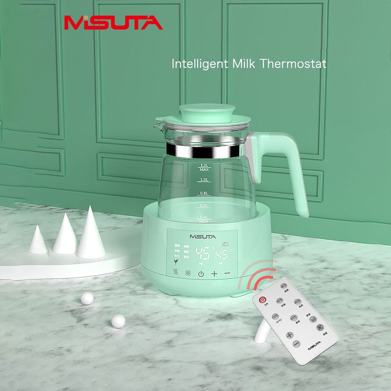 Máy hâm nước pha sữa thông minh giữ nhiệt điều khiển từ xa Misuta dành mẹ nào không muốn mua máy pha sữa mà vẫn muốn nhàn. Đun nước siêu nhanh chỉ 2 phút, có các mức nhiệt từ 40 đến 100 độ tuỳ theo nhiệt độ các loại sữa cần pha Các mẹ chỉ cần đun sôi nước sau đó lúc nào cần pha ấn lại mức nhiệt độ mong muốn là đã có nhiệt độ nước tiêu chuẩn để pha sữa, không lo sai nhiệt độ làm phá huỷ chất dinh dưỡng của sữaMẫu mới nhất màn hình cảm ứng, đế xoay 360 độ, có chế độ khử Clo. Đặc biệt có điều khiển từ xa, đêm các mẹ có thể nằm trên giường bấm nhiệt độ trước khi pha sữa cho bé, vô cùng tiện lợi
