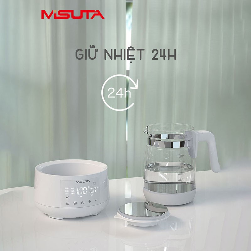 Bình đun nước siêu tốc pha trà, pha cafe, đun nước sôi, pha sữa thông minh giữ nhiệt điều khiển từ xa Misuta chính hãng
