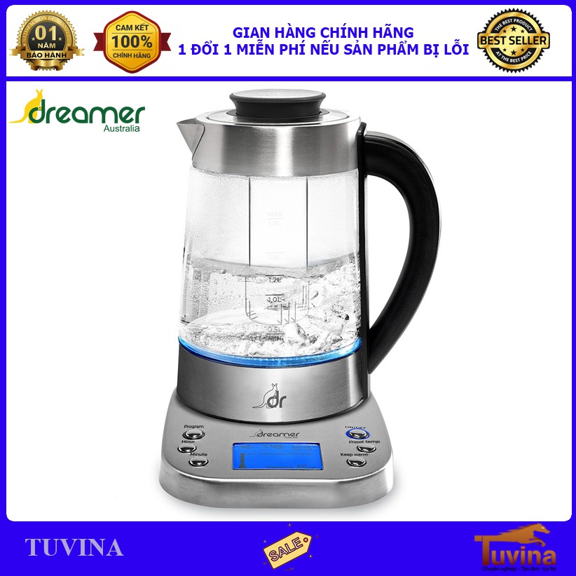 Bình Đun Nước Siêu Tốc Thông Minh Úc Dreamer DK-S17D 1.7 Lít - 6 Mức Điều Chỉnh Nhiệt Độ - Hàng Chính Hãng