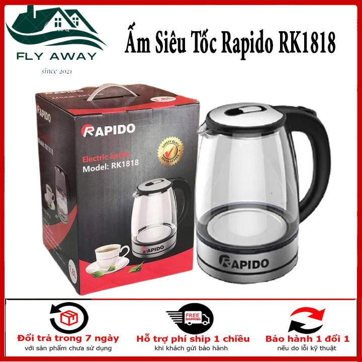 Bình Đun Nước, Siêu Tốc Thuỷ Tinh Rapido RK1818 Dung Tích 1.8L Đun Sôi Nước Nhanh, An Toàn, Tiết Kiệm Điện