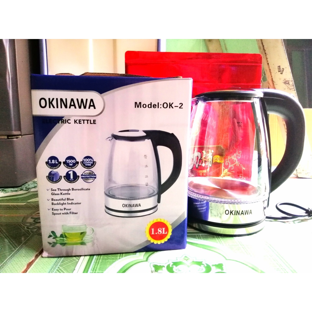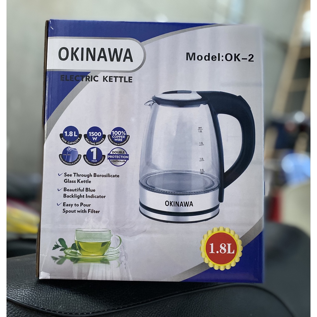 BÌNH ĐUN NƯỚC SIÊU TỐC THỦY TINH CAO CẤP OKINAWA 1.8L - TCMall