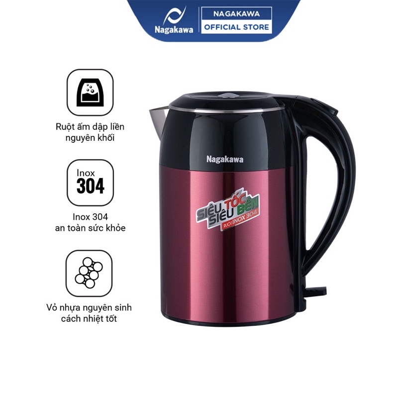 Thiết Bị Điện Gia Dụng > Đồ gia dụng nhà bếp > Ấm đun siêu tốc || Bình Đun Siêu Tốc 2 Lớp Nagakawa NAG0315 (1.8 Lít) - Hàng Chính HãngCòn hàng