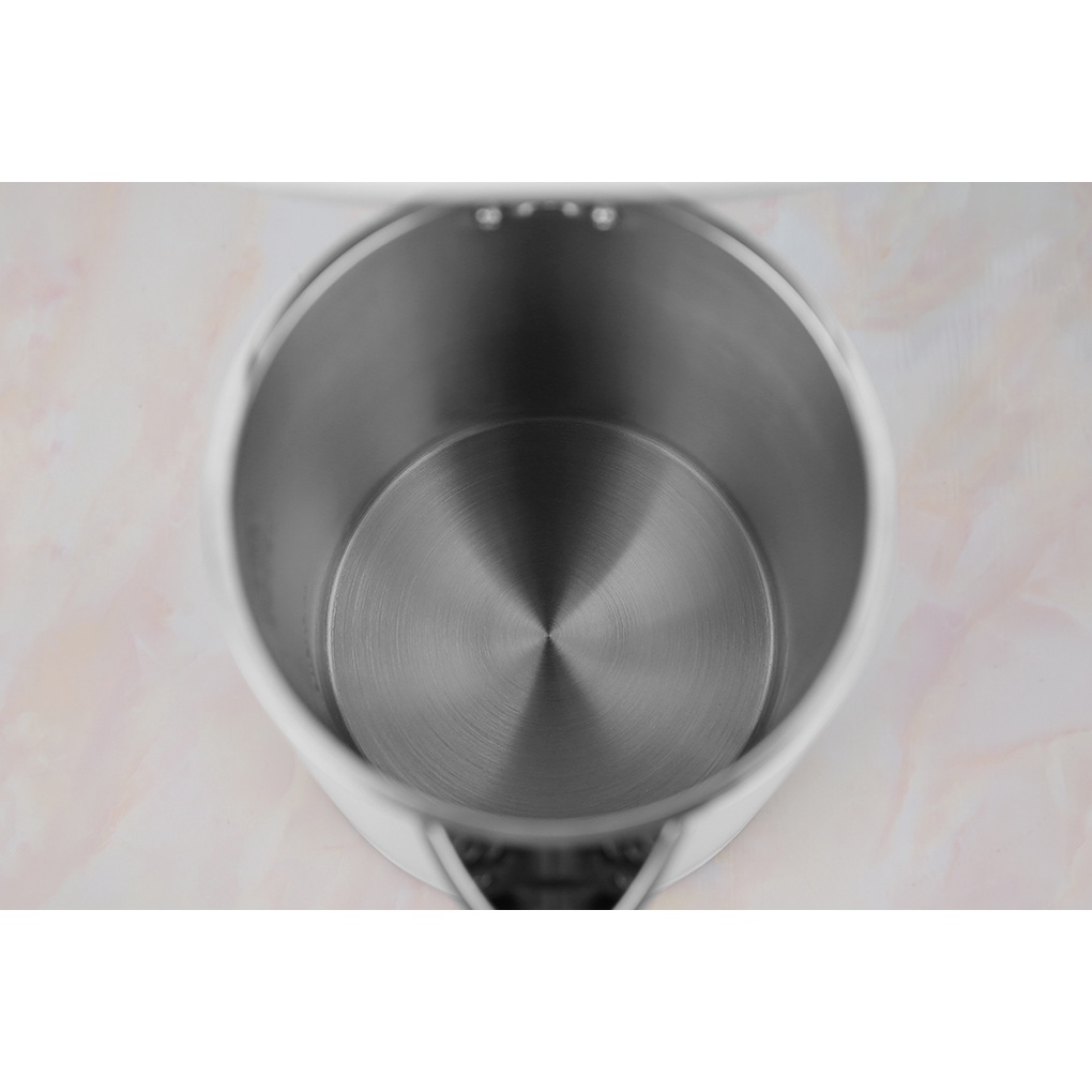 Nắp bên trong bình đun siêu tốc cũng làm bằng chất liệu inox 304 chống gỉ sét, truyền nhiệt tốt, đun nước tối ưu. Ngoài ra, thân 2 lớp cách nhiệt chống bị bỏng, yên tâm khi di chuyển bình đun siêu tốc.