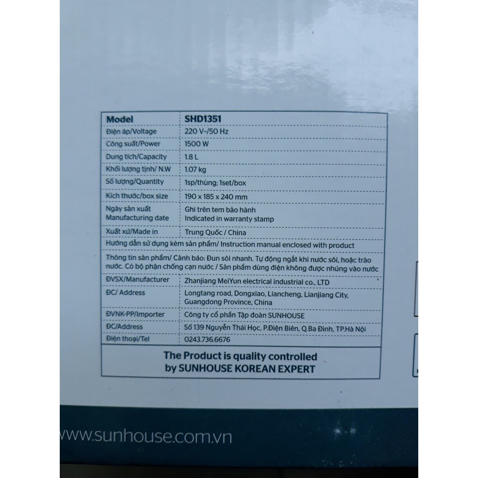 Thương hiệu: Sunhouse | Xem thêm các sản phẩm Bình đun siêu tốc của SunhouseMô tả ngắn