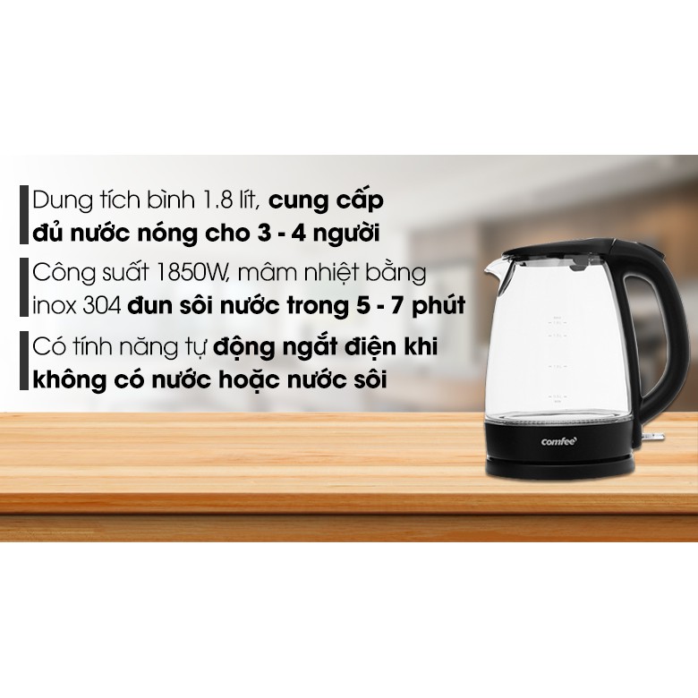 Bình đun siêu tốc Comfee -Midea 1.8 lít, CK-GC1820B, công suất 1850W