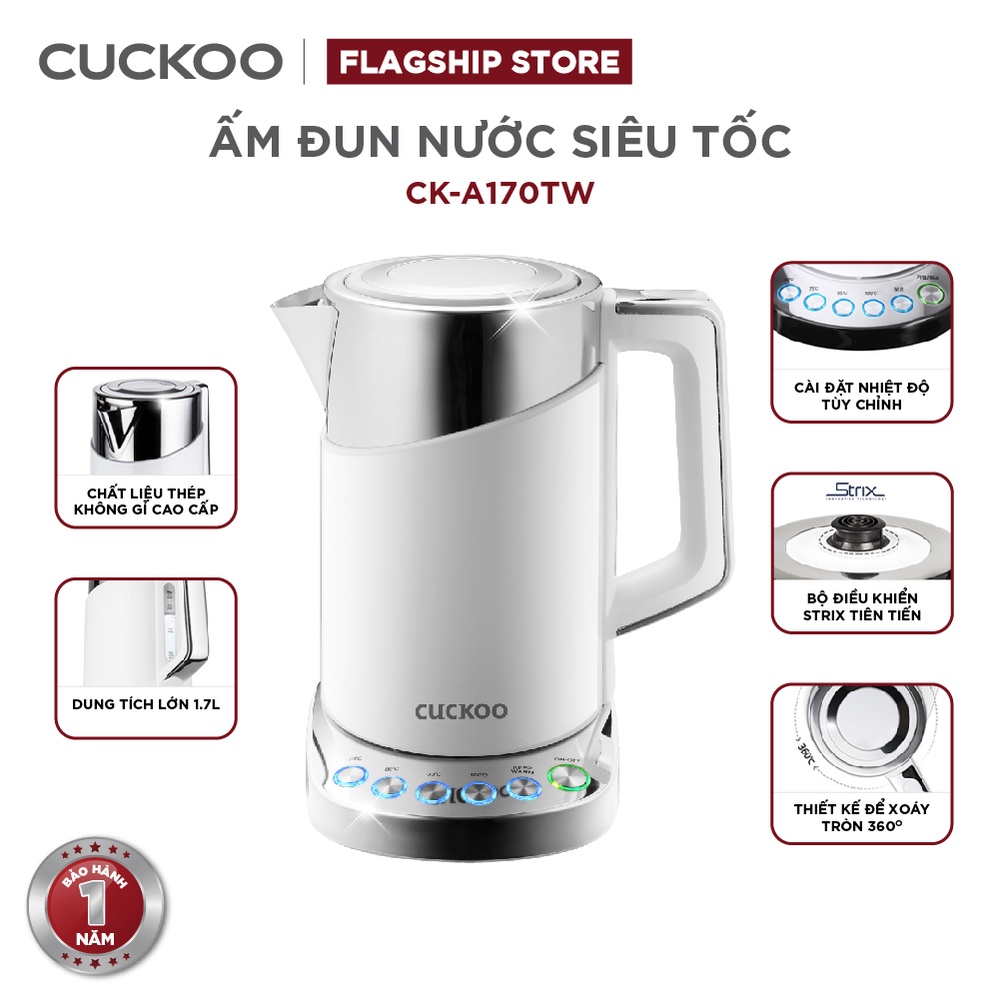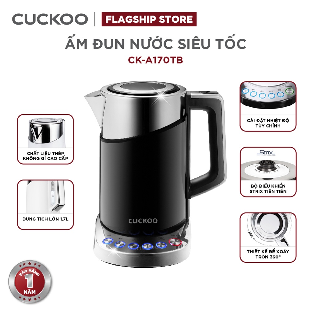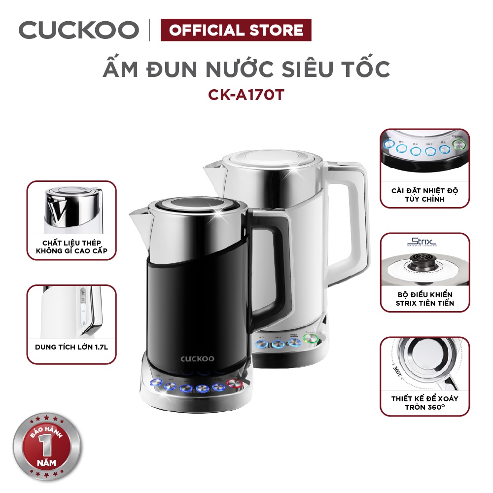 Bình đun siêu tốc đa năng Cuckoo CK-A170T dung tích lớn 1.7L - 1850W - Điều chỉnh nhiệt độ nước - Hàng chính hãng