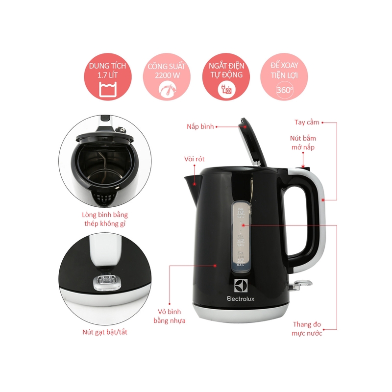 Thương hiệu: Electrolux | Xem thêm các sản phẩm Bình đun siêu tốc của ElectroluxMô tả ngắn