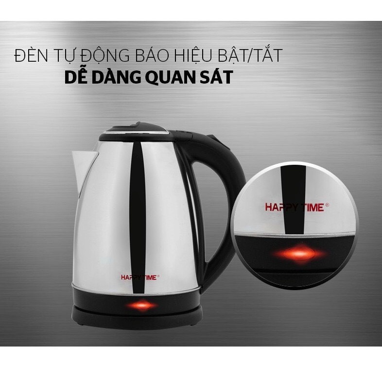 Bình Đun Siêu Tốc Inox Cách Nhiệt HTD1081, Siêu Bền, Cách Điện- Ấm Siêu Tốc Đun Nước Happy Time SunHouse 1,8l