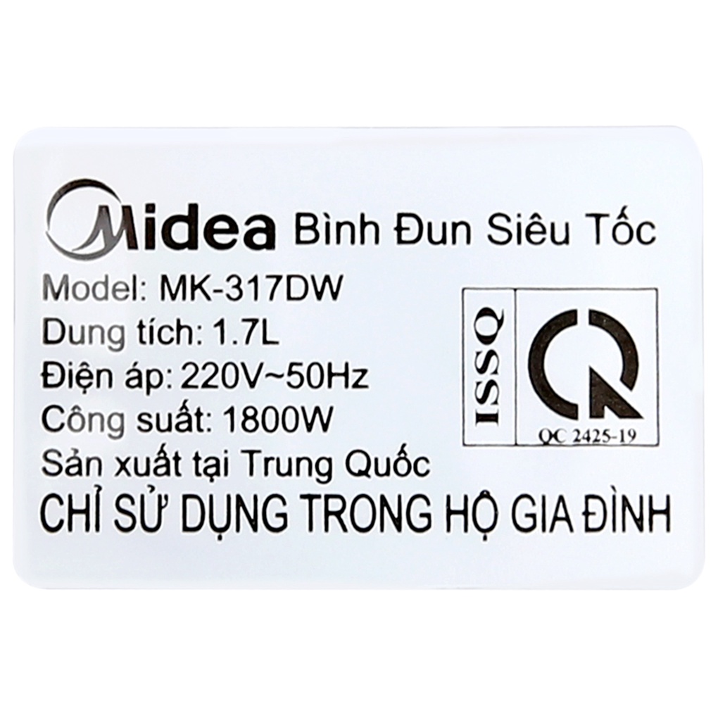 Thiết Bị Điện Gia Dụng > Đồ gia dụng nhà bếp > Ấm đun siêu tốc || [Mã ELMALL150 giảm 8% đơn 500K] Bình đun siêu tốc Midea MK-317DWCòn hàng