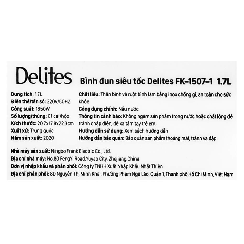 Thiết Bị Điện Gia Dụng > Đồ gia dụng nhà bếp > Ấm đun siêu tốc || [Mã ELHADEV giảm 4% đơn 300K] Bình đun siêu tốc inox Delites FK-1507-1 1.7 lít - Chính hãng BH 12 thángCòn hàng