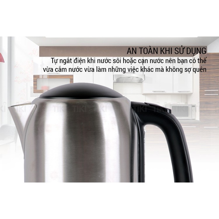Bình đun có chức năng tự ngắt điện khi nước sôi hoặc cạn nước nên bạn có thể vừa cắm nước vừa làm những việc khác mà không sợ quên. Chức năng này còn giúp tăng tuổi thọ sản phẩm và phòng tránh cháy nổ, đảm bảo an toàn tuyệt đối cho người dùng