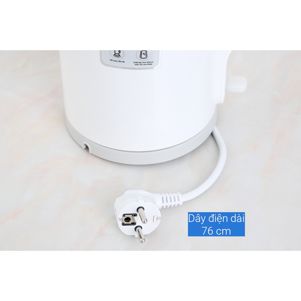 ● Công suất 1800W giúp đun sôi nước nhanh chỉ trong 5 – 7 phút, người dùng đã có ngay lượng nước nóng cần thiết để sử dụng