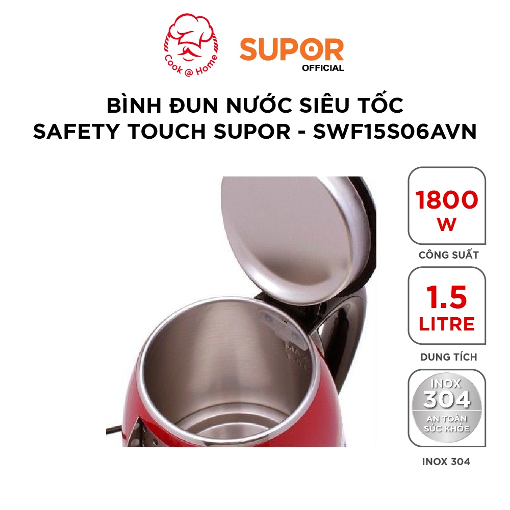 Bình đun siêu tốc Safety Touch Supor SWF15S06AVN - 1.5L,1800W