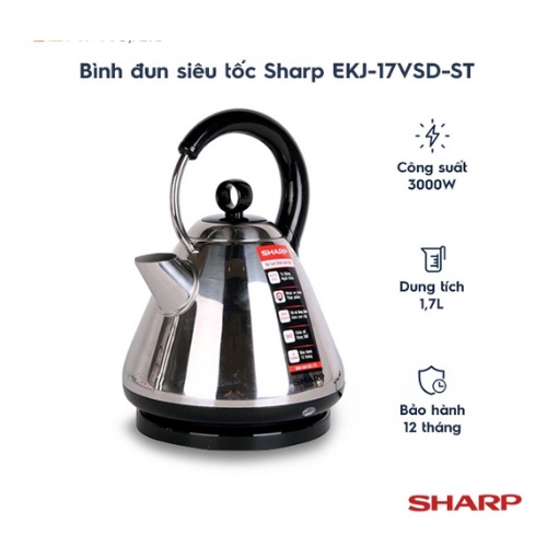 Thiết Bị Điện Gia Dụng > Đồ gia dụng nhà bếp > Ấm đun siêu tốc || Bình đun siêu tốc SHARP EKJ-17VSD-ST(1.7L)-Hàng Chính HãngCòn hàng