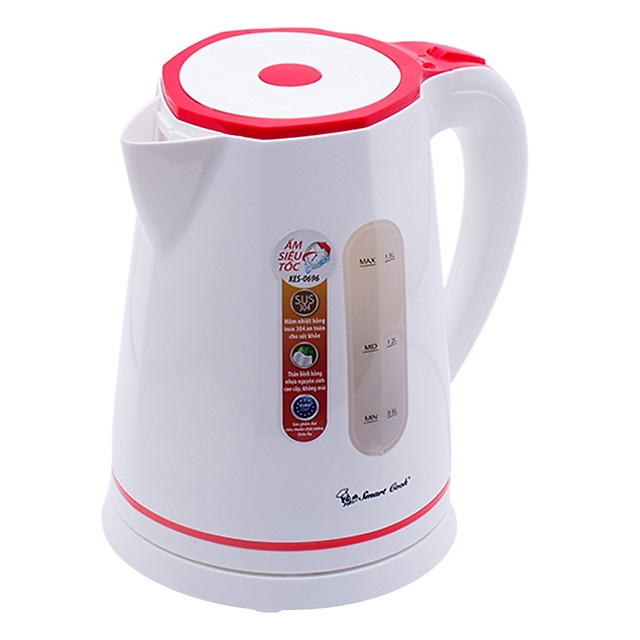 Bình đun nước siêu tốc SmartCook KES-0696 chính hãng có thiết kế nhỏ gọn, kiểu dáng hiện đại với màu trắng phối đỏ ở nắp bình và đáy bình, mang lại nét đẹp sang trọng cho không gian sử dụng. Sản phẩm thiết kế tay cầm tiện dụng, giúp bạn dễ dàng di chuyển, không chiếm nhiều diện tích khi sử dụng.