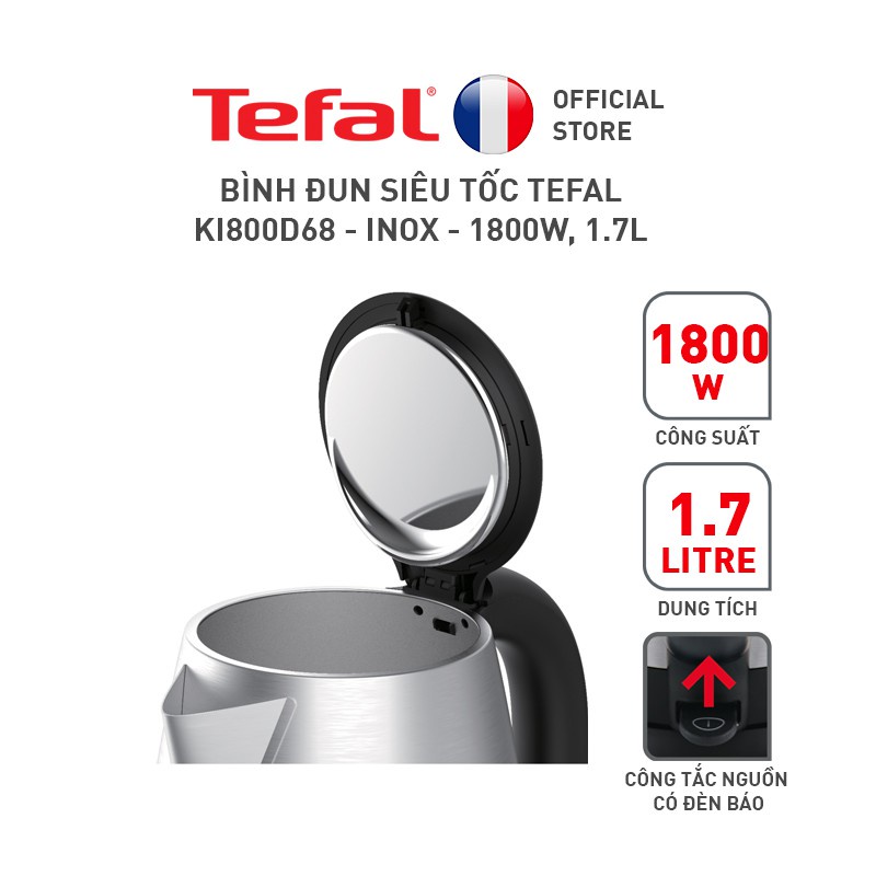 Thiết Bị Điện Gia Dụng > Đồ gia dụng nhà bếp > Ấm đun siêu tốc || [Mã 44ELSALE2 giảm 7% đơn 300K] Bình đun siêu tốc Tefal KI800D68 - inox - 1800W, 1.7LCòn hàng
