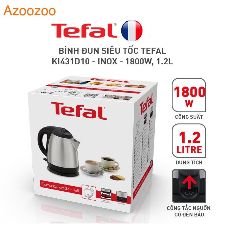 Thiết Bị Điện Gia Dụng > Đồ gia dụng nhà bếp > Ấm đun siêu tốc || [Mã 44ELSALE2 giảm 7% đơn 300K] Bình đun siêu tốc Tefal KI431D10 - inox - 1800W, 1.2LCòn hàng