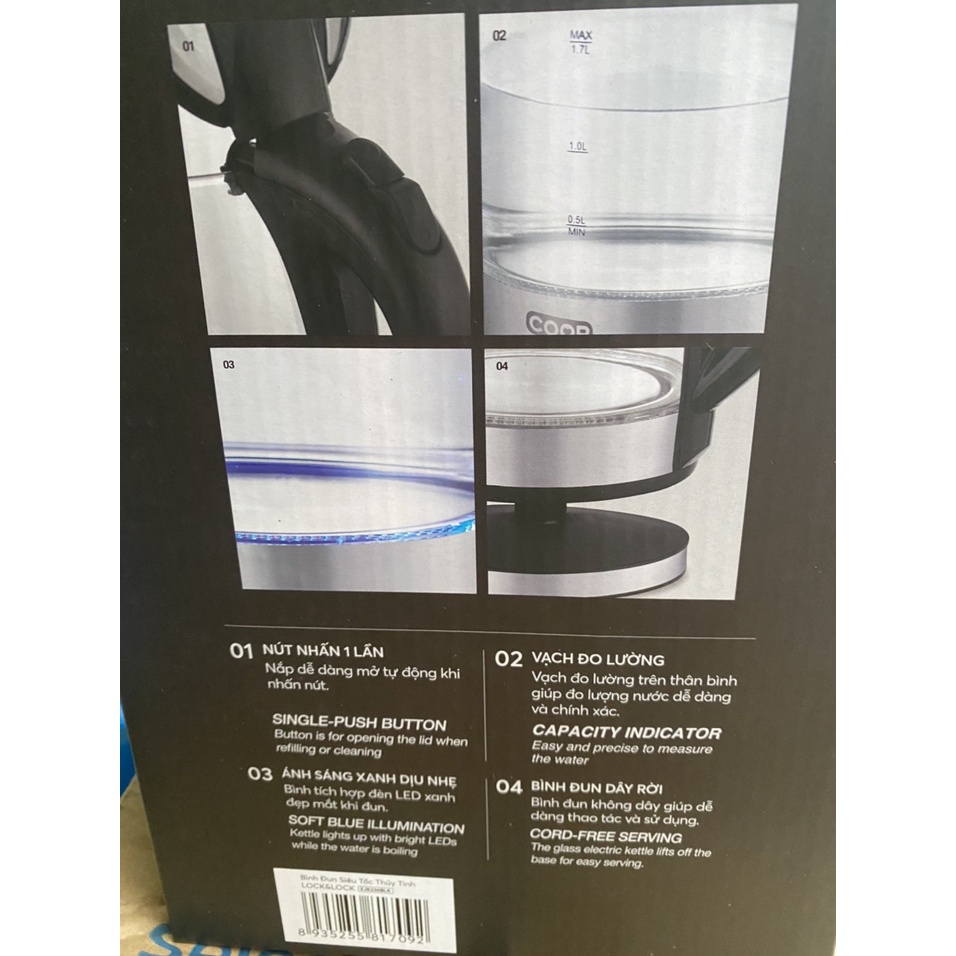 Giới thiệu Bình đun siêu tốc thủy tinh Coop Select 1,7L, Hàng lock lock