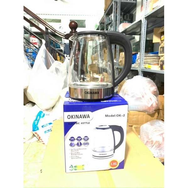 Bình đun siêu tốc thủy tinh OKINAWA OK-2 Công Suất 1500W Có Đèn UV Khử Khuẩn-----------------------------------------------------------------------------------------------