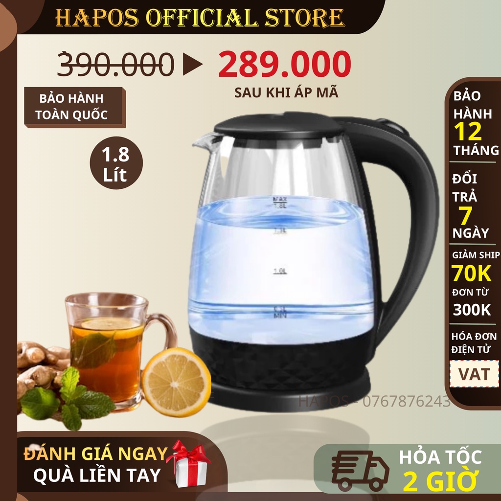 Giới thiệu Bình đun siêu tốc thủy tinh Perfect PF-T18 1500W - Hapos phân phối chính hãng