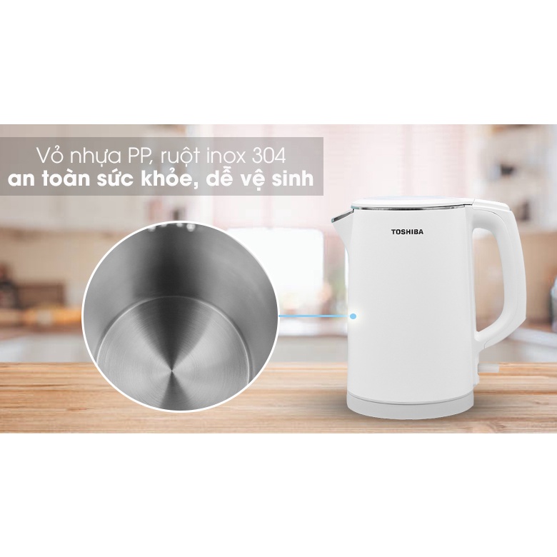Bình đun siêu tốc Toshiba thiết kế đơn giản, màu trắng tươi sáng cho không gian bếp thêm hiện đại, tinh tế