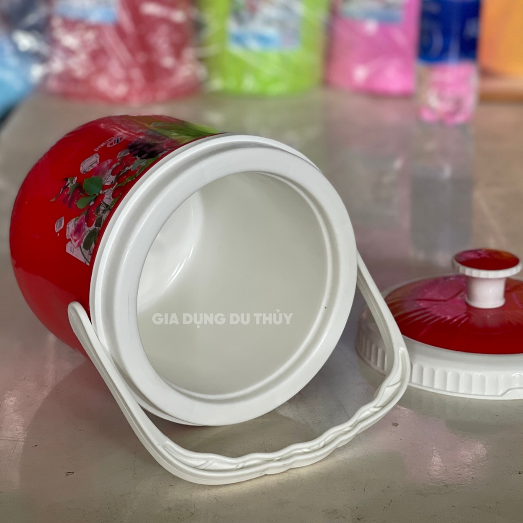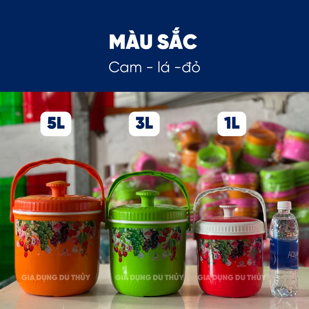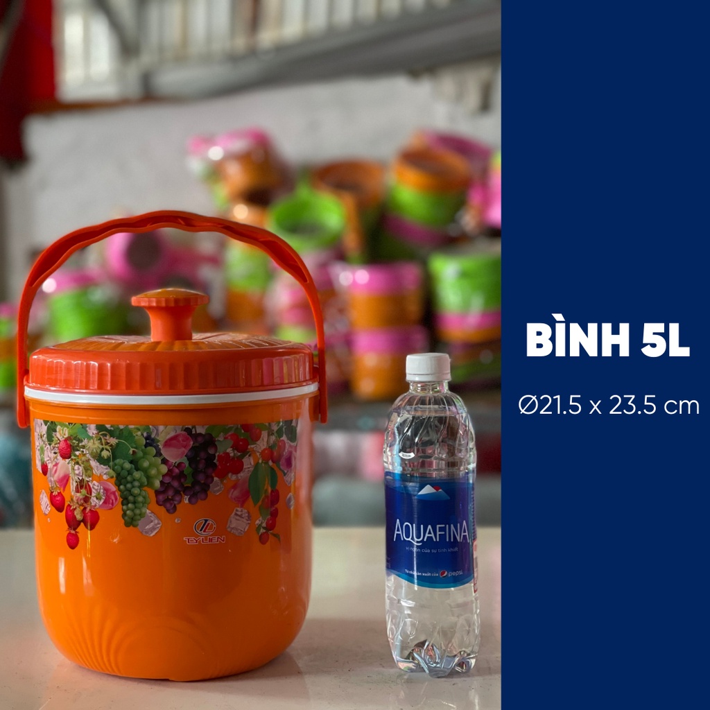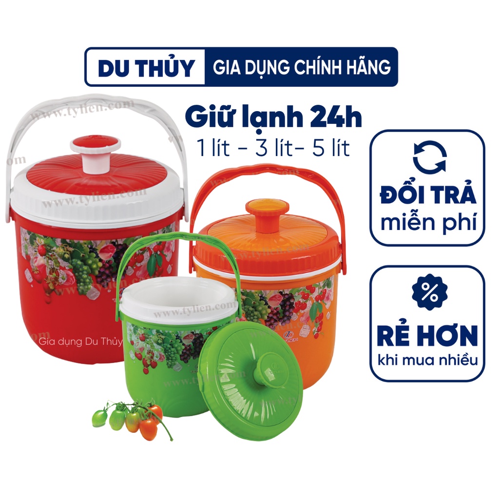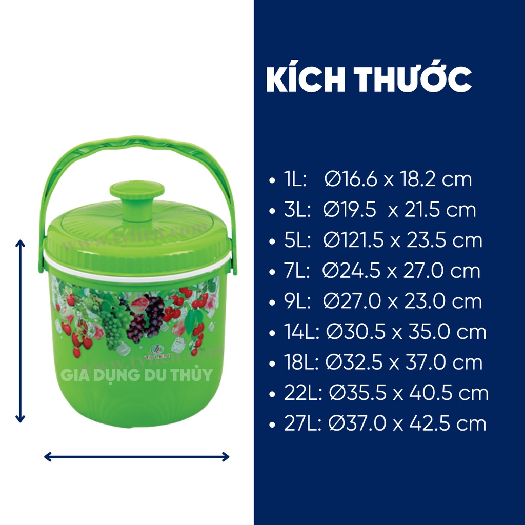 Bình đựng nước đá tròn Tý Liên có quai xách size nhỏ 1L, 3L, 5L giữ lạnh 24h nhựa chính phẩm an toàn thương hiệu Tý Liên